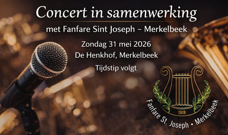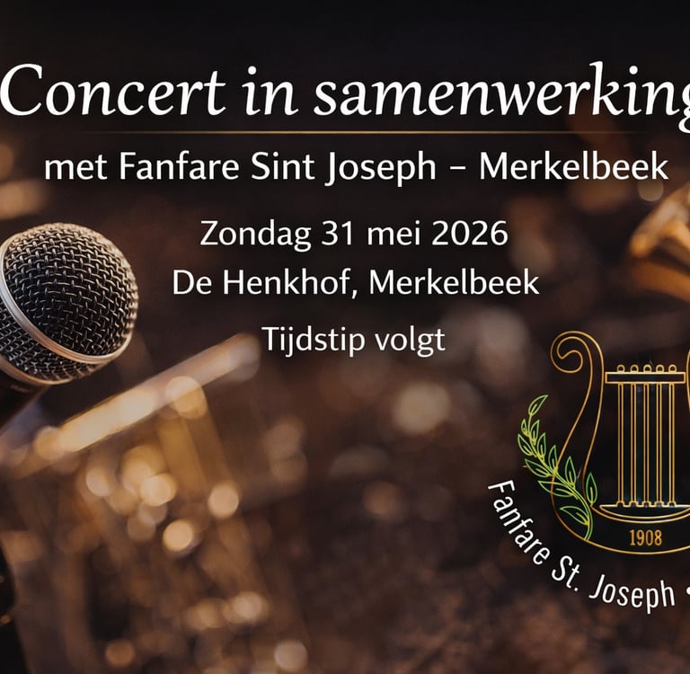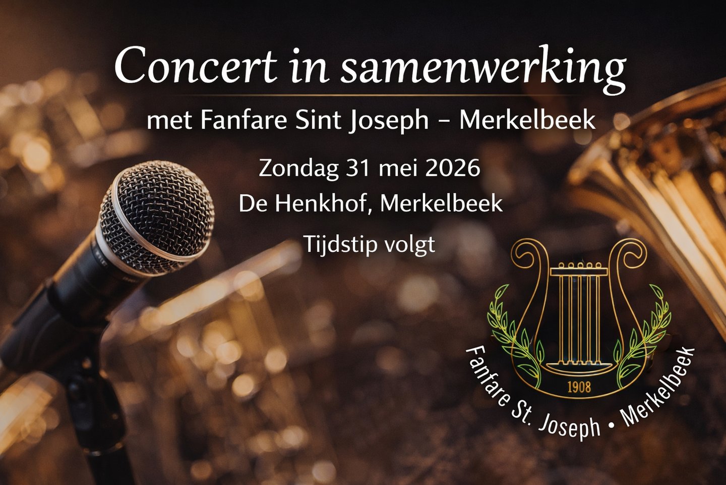 Op zondag 31 mei 2026 verzorgen wij een gezamenlijk concert met Fanfare Sint Joseph uit Merkelbeek. Het concert vindt plaats in De Henkhof in Merkelbeek. Het tijdstip volgt later, samen maken we er een mooie muzikale middag van.