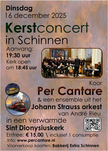Laat je meevoeren in een warme, muzikale kerstbeleving in de sfeervolle Sint Dionysiuskerk in Schinnen. Per Cantare verzorgt samen met een ensemble uit het Johann Strauss Orkest van André Rieu een onvergetelijke avond vol prachtige klanken en kerstgevoel.